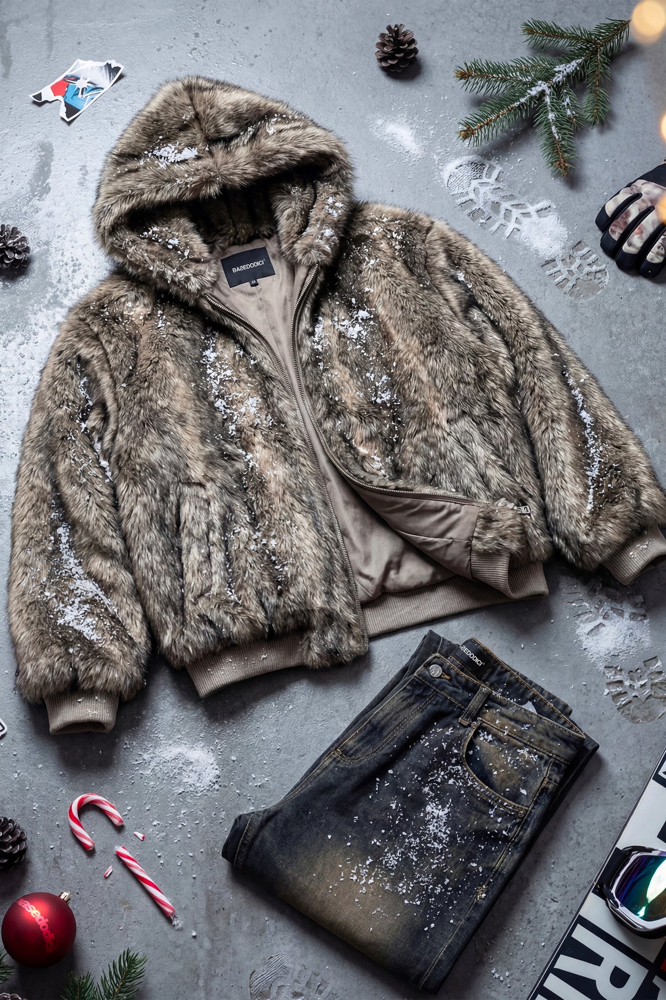 Faux Fur Jacket "DIRTY XMAS" Grey
