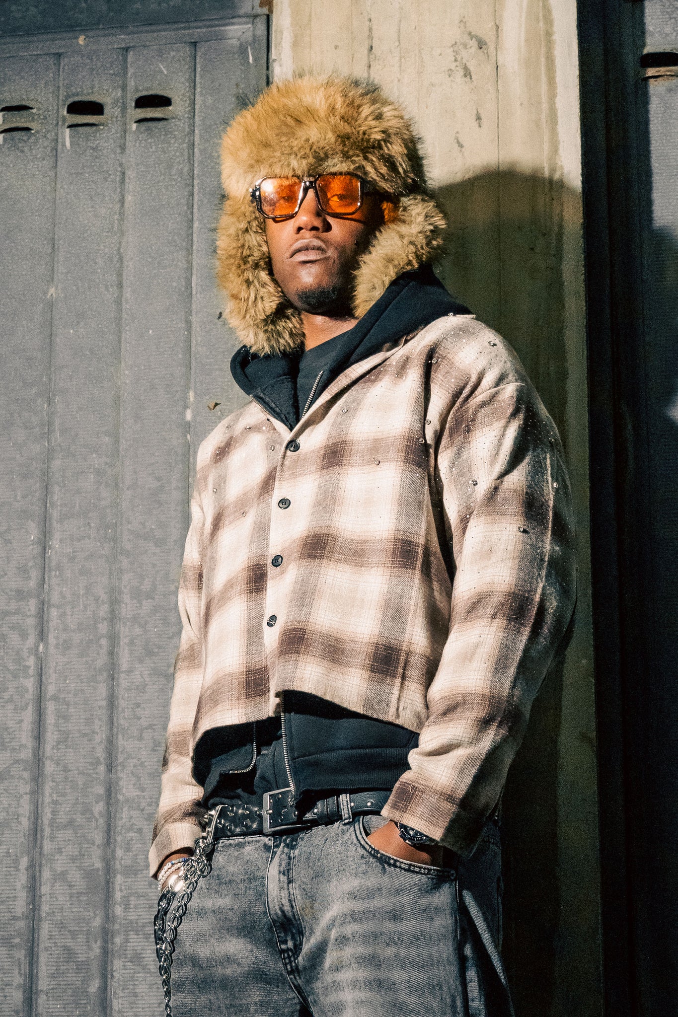 Flanella Shirt "RUDE DIAMOND" Rhinestones Sand